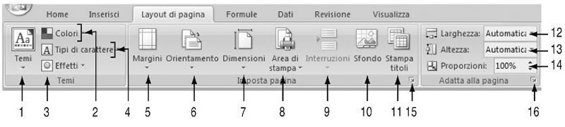2.211) Quale delle seguenti operazioni è possibile effettuare premendo il pulsante 7 della Barra Layout di Pagina sul programma Microsoft Excel 2007?