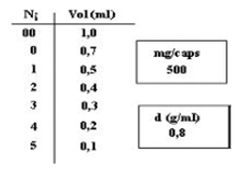 1376. Per le preparazioni galeniche in farmacia, sono disponibili capsule di gelatina dura individuabili con numeri che corrispondono alla loro capacità in volume. Dovendo preparare capsule contenenti ciascuna una polvere con densità apparente pari a 0,8
