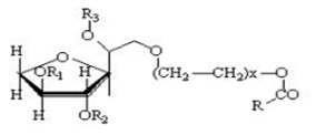 1690. I Tween sono esteri di sorbitani, aventi la struttura indicata, dove uno o più gruppi R1, R2 ed R3 corrispondono a residui poliossietilenici e R a residui acilici di diversa natura. I Tween sono individuabili con un numero che varia al variare di R.