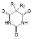 2240. I barbiturici possono essere classificati in base alla loro durata di azione. Questa sarà breve quando i sostituenti R1 ed R2 sul carbonio in 5 sono costituiti da: