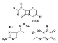 2543. Su quale dei punti elencati agisce il ceftriaxone, avente la struttura indicata?