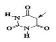 2884. Con quale numero si può contrassegnare la posizione evidenziata con una freccia nella struttura generale dell’acido barbiturico