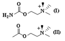 416. In farmaci agonisti del recettore muscarinico l’ossidrile della colina può essere esterificato da gruppi acilici diversi per dare i due composti del tipo (I) e (II) la cui azione farmacologica si differenzia