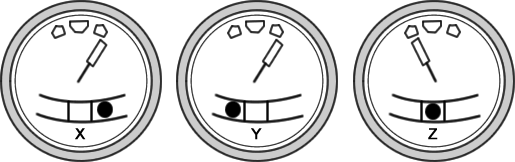 7.285 Riferendosi alla figura, quale indicatore di virata e sbandamento indica una virata corretta? (ID=1042)